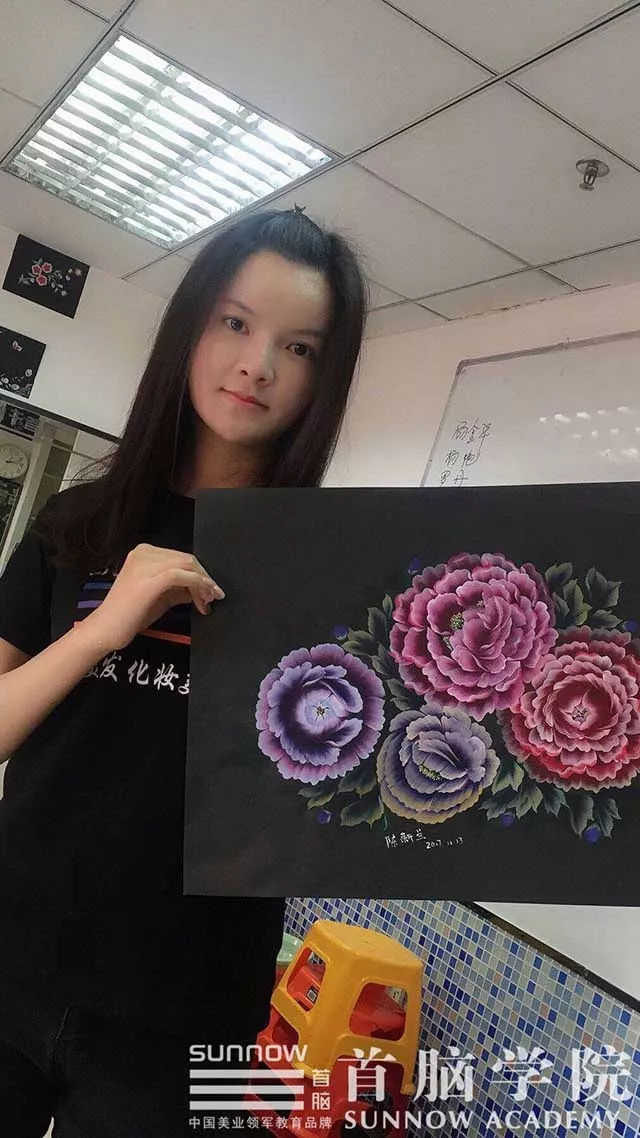尤其对实操指导是非常的耐心,由于班里同学很多,有时候画个花瓣,一片叶子可能都会重复好多遍,而老师总是不厌其烦,直到我们完全掌握。刚进班级的时候,我非常羡慕作品陈列墙上那些漂亮作品,到毕业的时候我的作品也能够展示其中了,心里感觉美美的。在首脑学校学习不仅收获了技术更收获了友谊,过去的同学而今已经成为了我的好闺蜜和事业伙伴,这段缘分值得我珍惜!这段经历让我终身难忘。