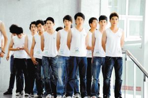 第26届世界大学生运动会将首次引入60位“礼仪先生”,给颁奖礼仪增添青春阳刚之美。图为正在等待“选秀”的男选手。 深圳商报记者 吴 峻 摄