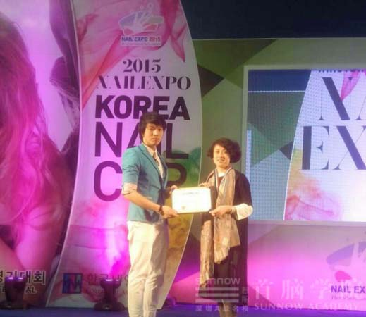 2015年4月27日,在韩国举办的国际美甲大赛,首脑学院南山校区美甲全科班-李秀丽同学作为亚洲美甲协会参赛团队代表参加了本次大赛,经过与国内外几十名参赛选手竞选,最终在美甲基础手部护理项目中脱颖而出,一举夺得国际大赛金奖。